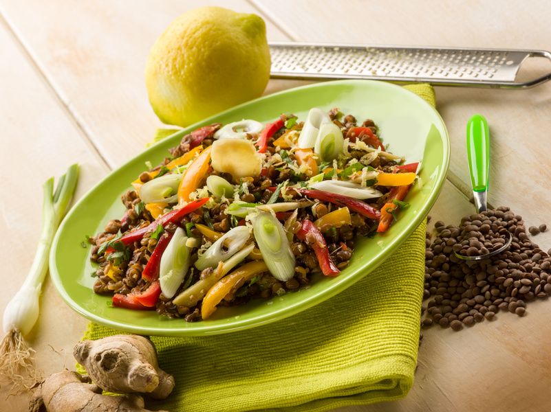 Salade anticholestérol: bento box de lentilles corail au saumon