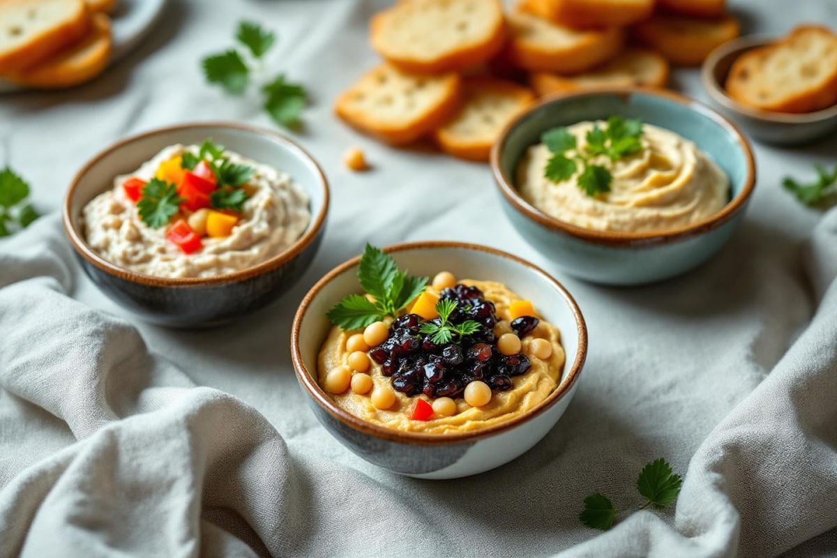Jouez avec les saveurs en ajoutant des herbes fraîches comme la menthe ou la coriandre, ou des épices telles que le sumac et le curry pour stimuler l'intérêt. Parsemez d’éclats de noisettes, de graines ou de zestes d'agrumes pour donner à chaque tartinade un caractère unique. Variez les présentations en utilisant des verrines ou de jolies assiettes colorées pour une esthétique attrayante.