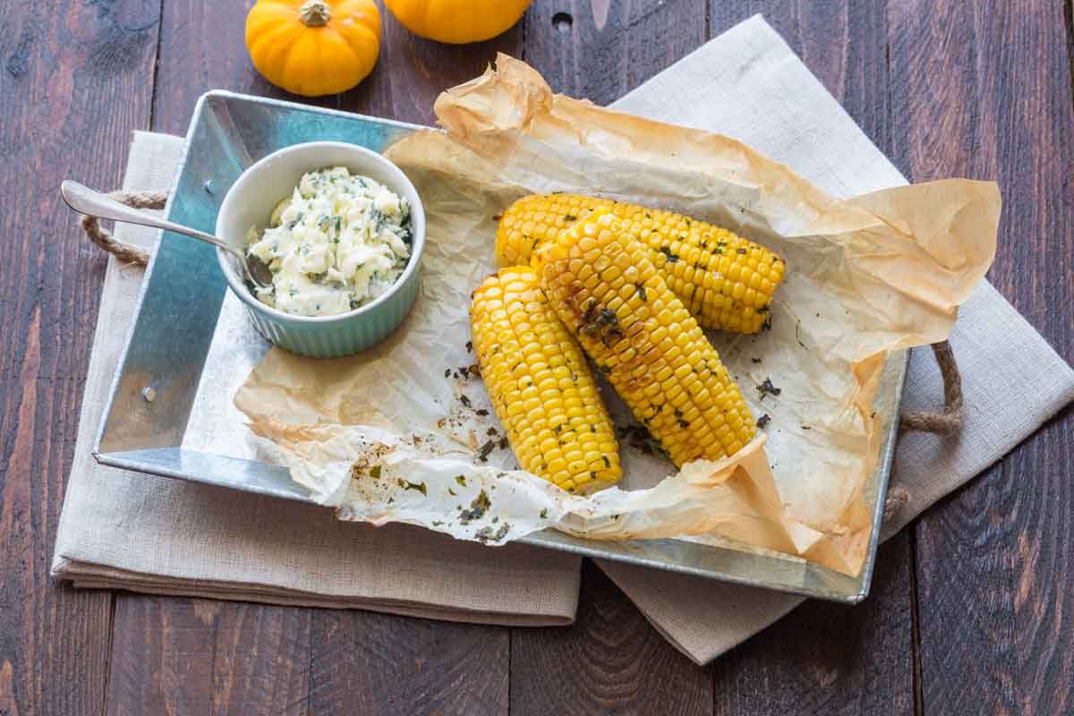 - Enlevez les feuilles des épis, tartinez-les généreusement de beurre aux herbes et mettez le reste du beurre dans un ramequin pour le service.