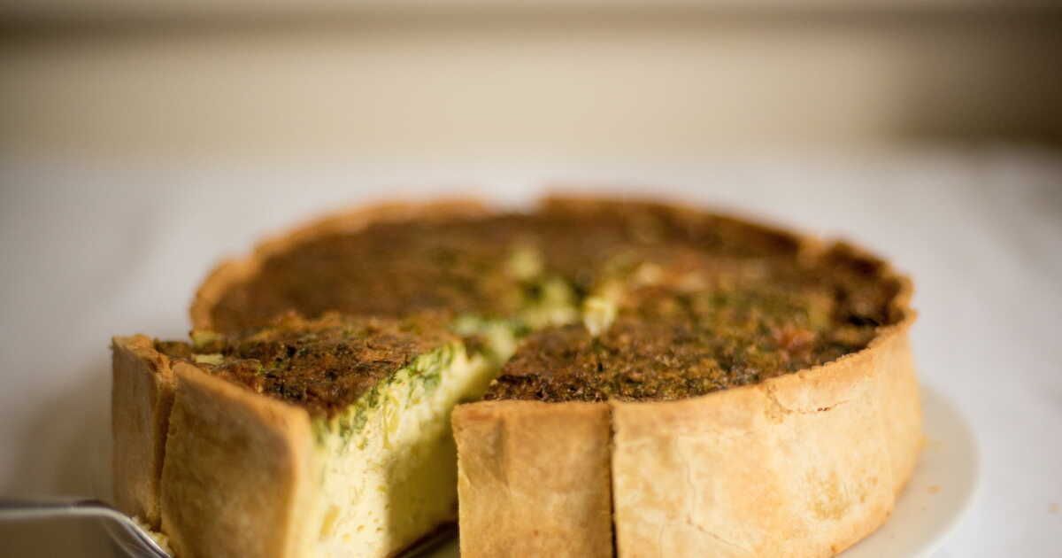 - Faites revenir échalotes, ail et épinards dans le beurre pendant 5 minutes. Mélangez avec les œufs et la crème, puis versez sur la pâte.