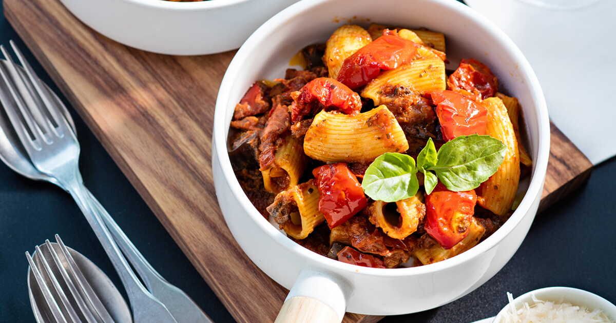 Les rigatonis accompagnés d'un ragoût de veau représentent une harmonie parfaite entre tradition culinaire et convivialité. Ce plat réconfortant séduit par ses saveurs riches et sa préparation toute en finesse.