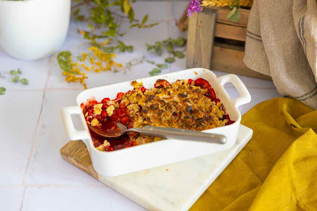 Avez-vous des fraises qui commencent à se dessécher ? Ne les jetez pas ! Voici une recette de crumble rapide qui met en valeur ce fruit délicieux. Idéal pour éviter le gaspillage, ce dessert polyvalent peut aussi être préparé avec d'autres fruits juteux, comme des pêches ou des pommes.