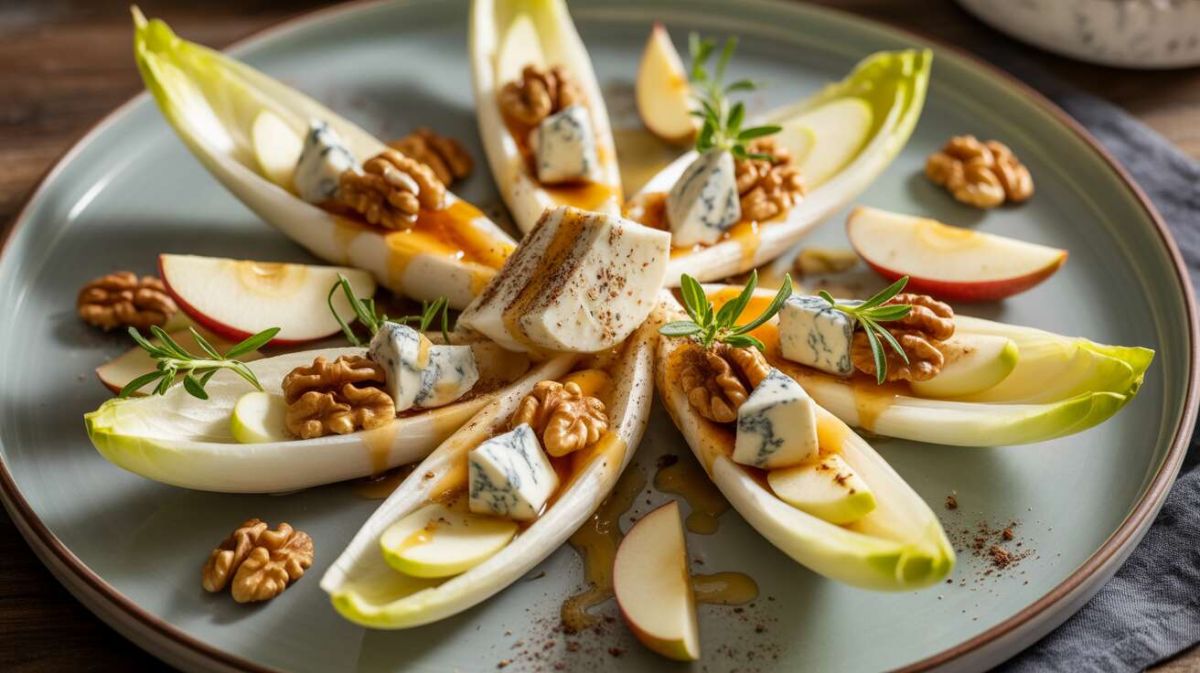 Les endives apéritives constituent une option idéale pour un apéritif à la fois élégant et délicieux. Cette recette savoureuse marie la puissance du fromage bleu, le croquant des noix et la douceur des pommes, le tout en un plat facile à réaliser qui impressionnera vos invités et apportera une touche de sophistication à votre table.