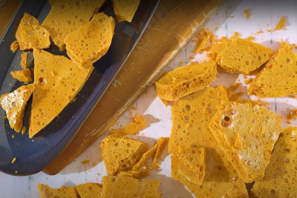 Avec son apparence étonnante, la tire-éponge, aussi connue comme honey comb taffy, offre une texture aérienne unique. Facile à conserver plusieurs jours, elle ravira à coup sûr petits et grands avec son aspect rigide et translucide qui impressionnera vos invités.