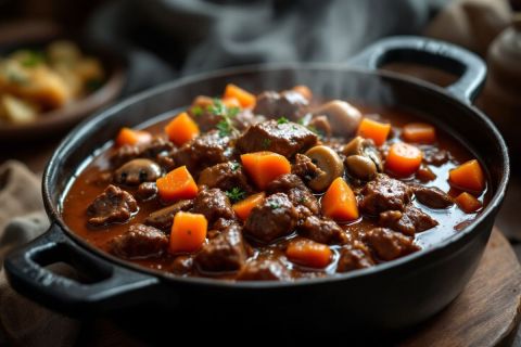 - Plat : Rôti de biche aux champignons de Paris