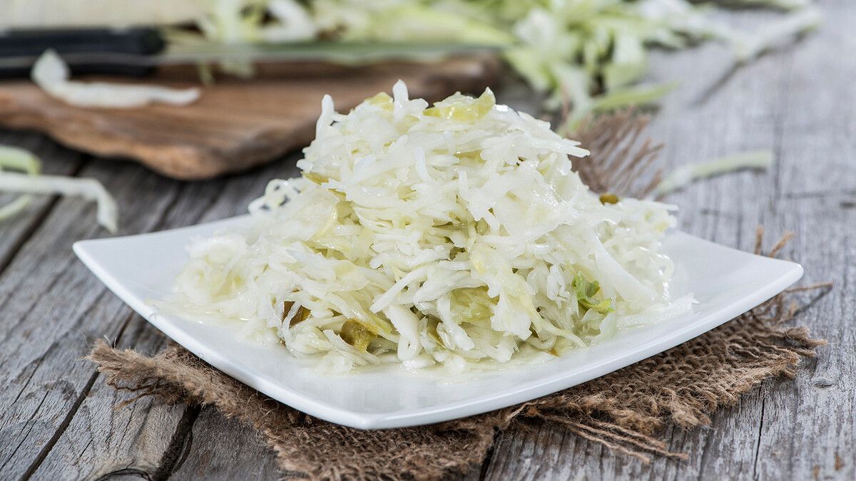 Découpe du chou : commencez par laver le chou blanc. Coupez-le ensuite en deux, retirez le cœur et les feuilles abîmées avant de l’émincer finement.