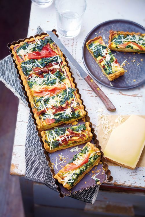 - Mélange crémeux : Dans un bol, battez les œufs avec la crème fraîche, assaisonnez avec du sel, du poivre et une touche de noix de muscade. Répartissez le mélange d'épinards sur la pâte, ajoutez le speck, versez le mélange crémeux puis saupoudrez de gruyère AOP suisse râpé.